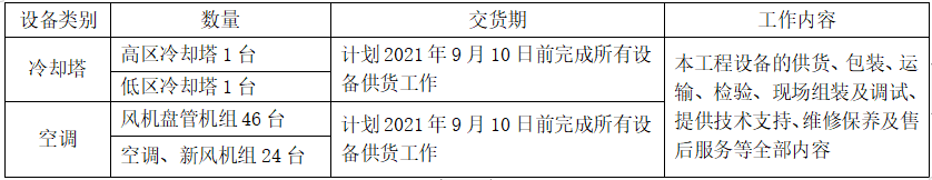 1.5 采购项目概况:本次询比采购主要内容为开云网页版·官方版在线总部办公大楼管网修缮工程的冷却塔及空调机组设备的供货、包装、运输、检验、现场组装及调试、提供技术支持、维修保养及售后服务等全部内容。具体规格、参数详见询比采购文件。