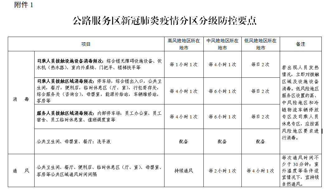 附件:1.公路服务区新冠肺炎疫情分区分级防控要点