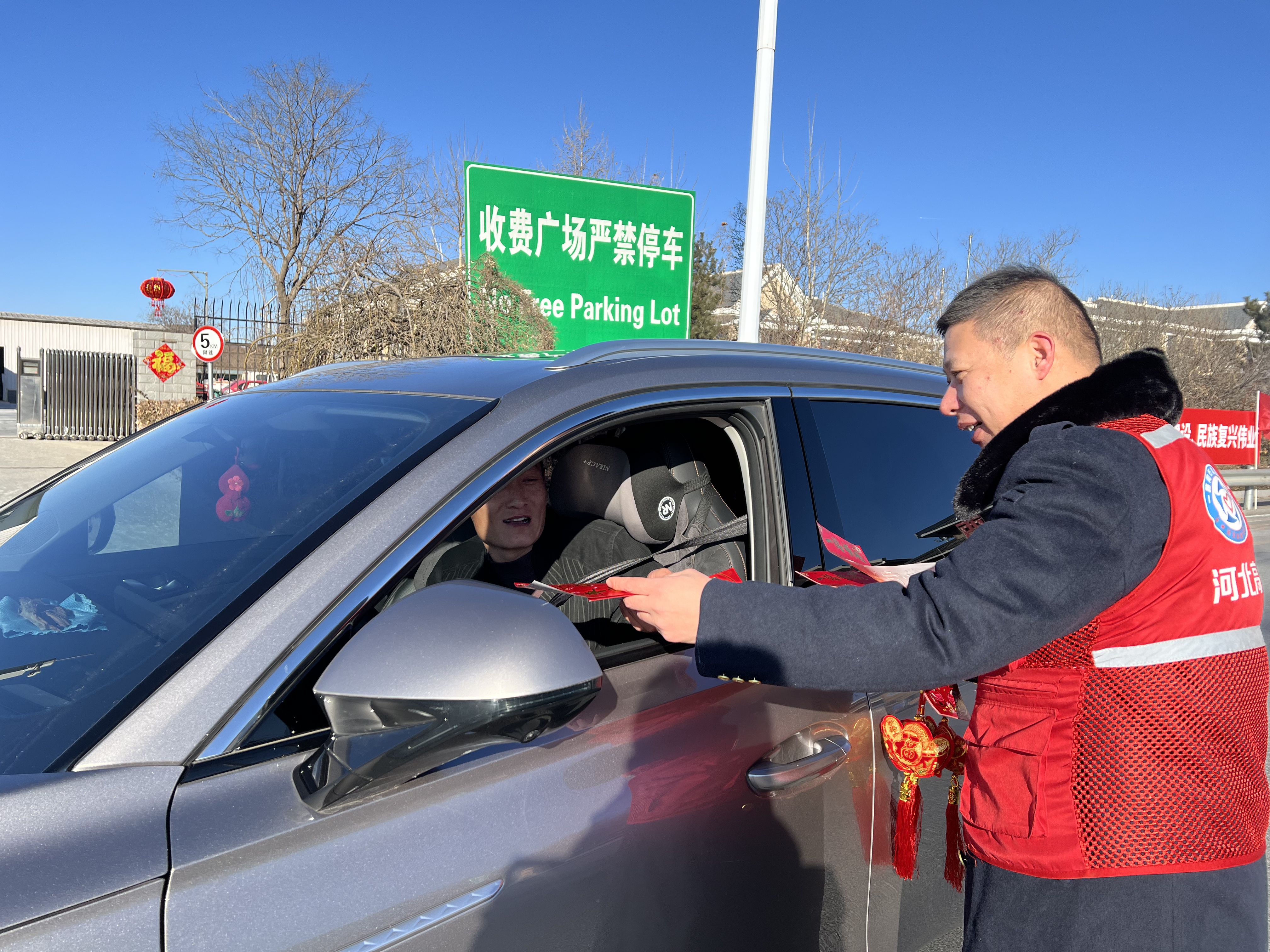 为高效开展春节假期线下专题直播,直播团队提前设置宣传点位,开展新春送祝福活动,与现场过往司乘进行友好互动,为司乘发放特意准备的春节小礼品,为增添节日氛围添薪蓄力。同时,利用此次线下直播机会,主播现场发放抖音二维码,在人流集中时段,广泛动员沿线司乘点关注、加粉丝群,提升张涿高速关注度。