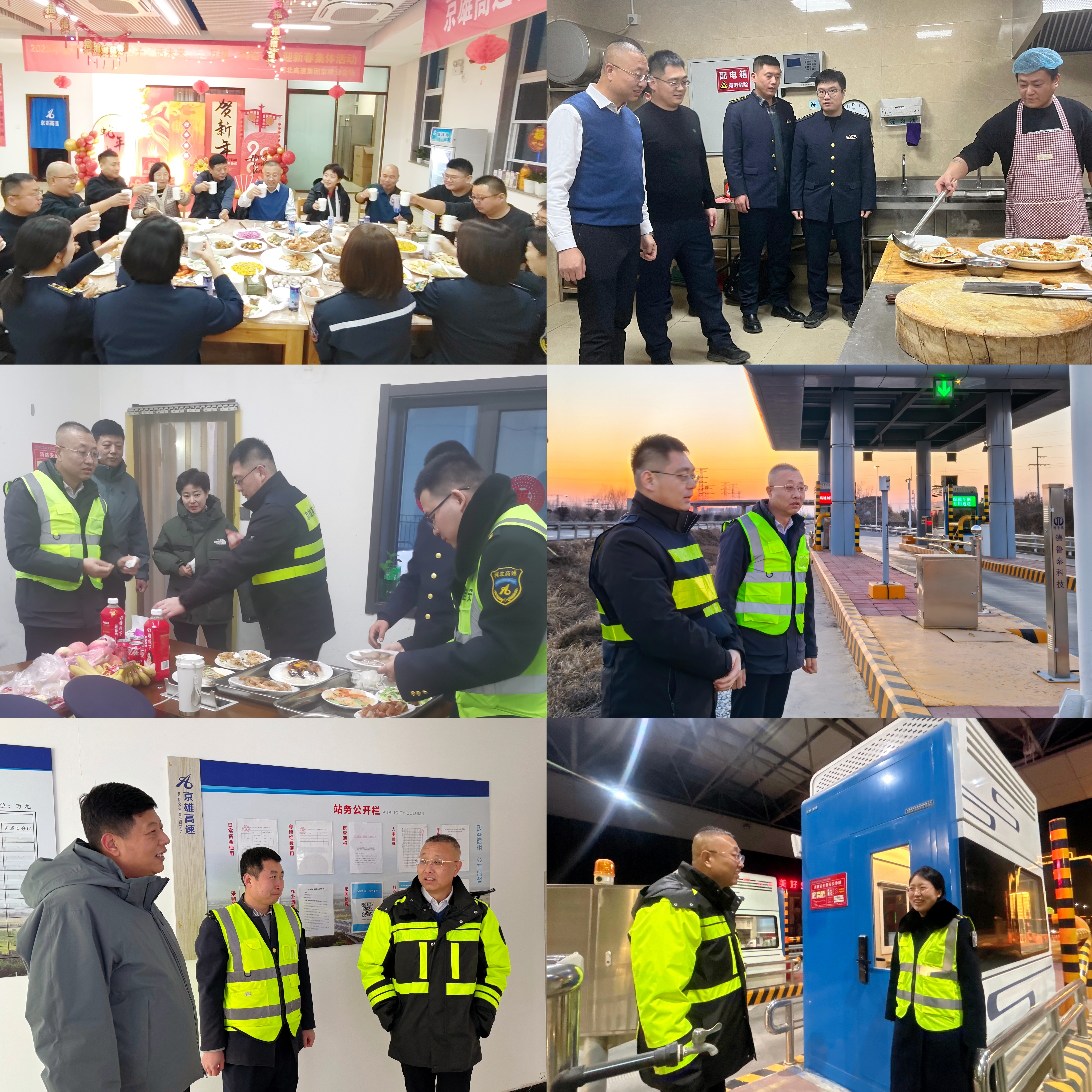 高建国一行深入各基层单位,实地走访收费车道、广场、宿办区域,全面了解春节期间交通流量、站口保畅、安保维稳、值班值守、便民服务、机电设备运行等情况,每到一处都认真查看食堂春节菜谱,叮嘱值班领导及时关注职工需求,保障值班人员饮食可口。28日晚为值守岗位的干部职工送去年夜饭,与职工们齐聚一堂,同享精心准备的暖心团圆饭,与大家亲切交谈,鼓励大家以饱满的履职热情、强烈的责任担当,认真妥善做好春节道路安全保畅等工作,并向一线干部职工致以诚挚的问候和新春的祝福。