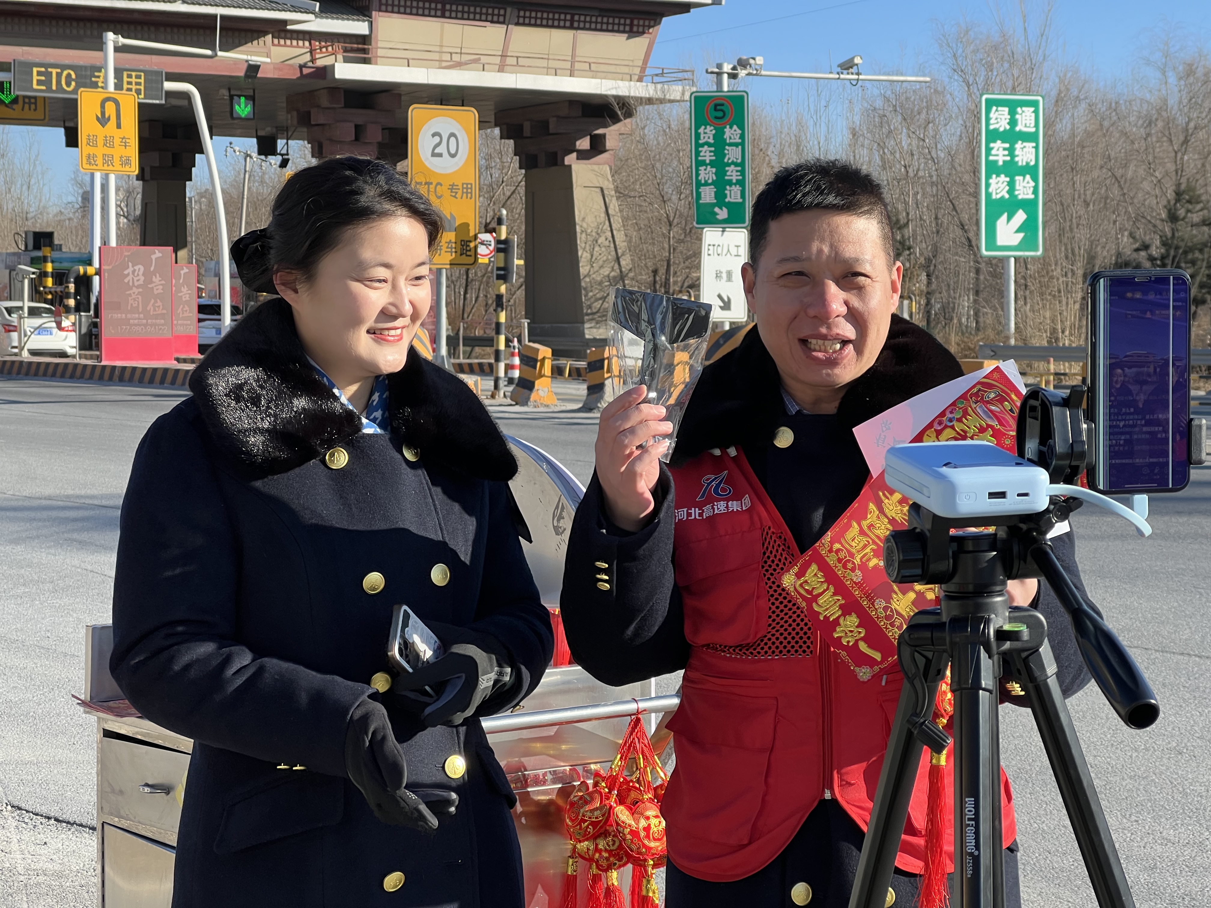抖音直播,实时分享路况信息。春节期间,分公司抖音直播团队除每天日常直播外,在假期第一天和最后一天在涞水西收费站进行线下直播,以路况播报、路线规划、提供救援服务等为主要内容,持续关注沿线路况及河北高速全域路况,为司乘提供实时出行信息。春节期间,共直播15场,直播时长16小时,受邀参与中国交通广播直播活动3次。