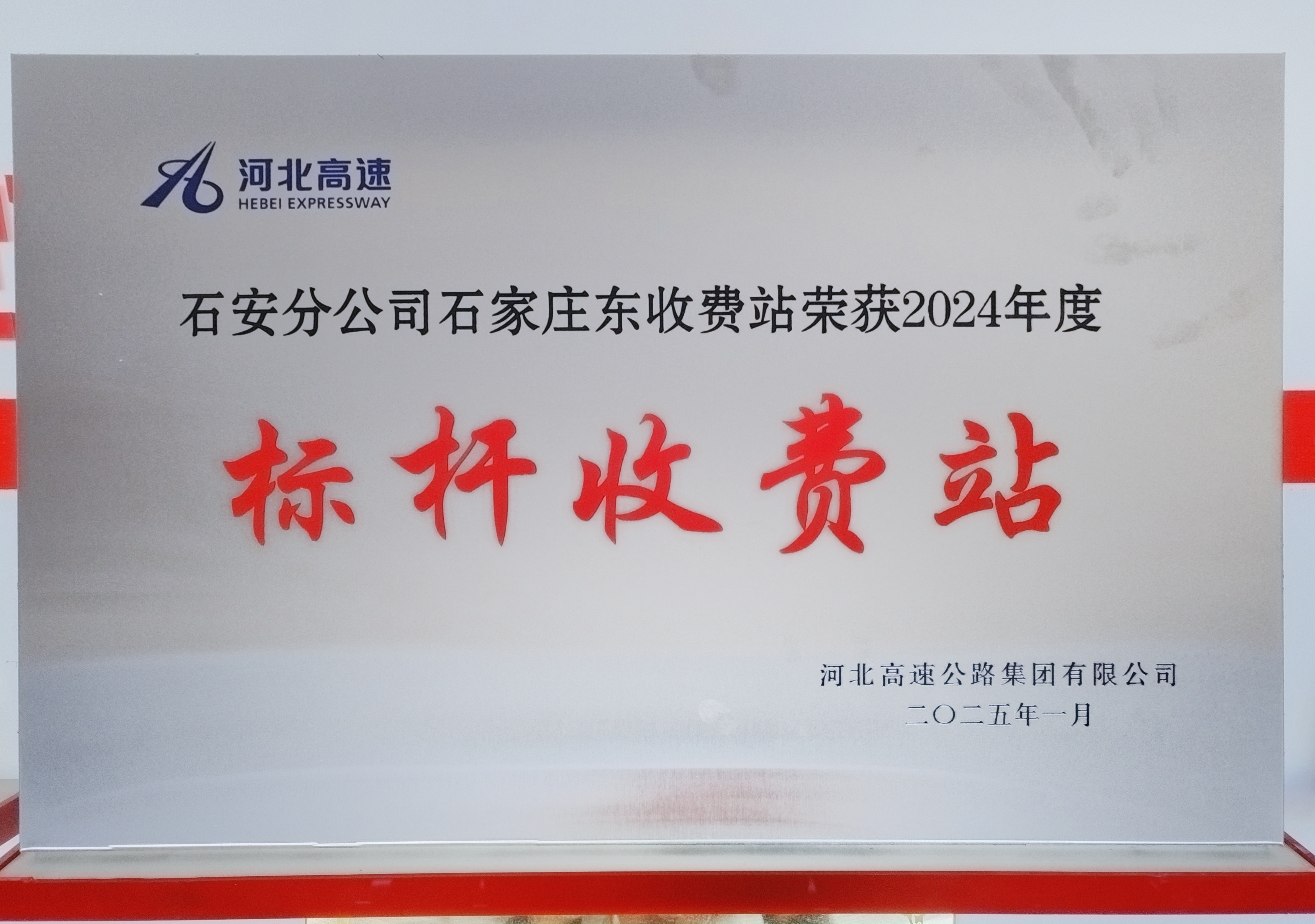 在集团公司2024年“创建标准化规范化收费站建设暨标杆收费站”活动评选中,石家庄东收费站榜上有名,喜获“标杆收费站”荣誉称号,为分公司树立行业标杆再添新成果。