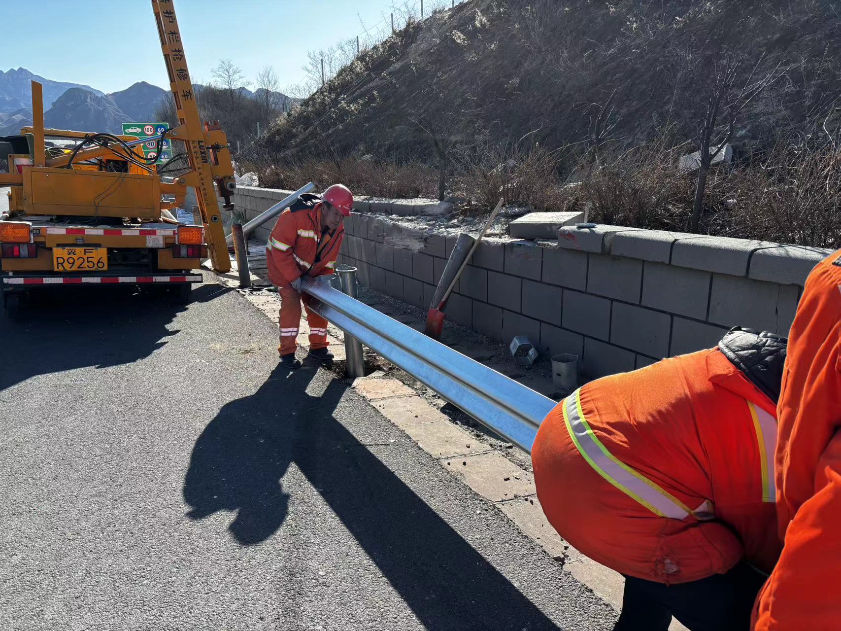 当日下午,坡仓养护队组织人员对事故现场损坏的护栏板进行了紧急抢修。克服时间紧、任务重的困难,高效完成了修复工作,确保了道路设施的完好和行车安全。
