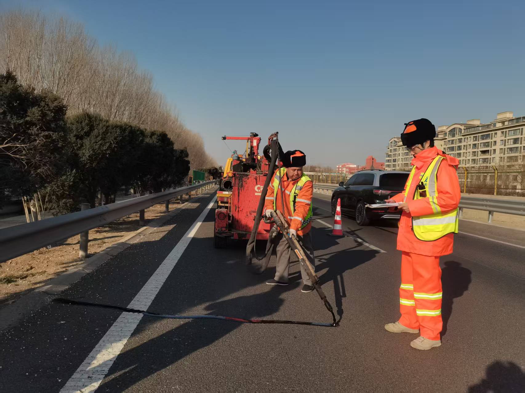 2025年2月18日,灌缝作业正式实施。养护队深知路面状况对行车安全和高速公路自身健康的重要性,此次灌缝作业将超车道和行车道的所有裂缝,作为重点处理对象,力求做到全面、细致、无遗漏。