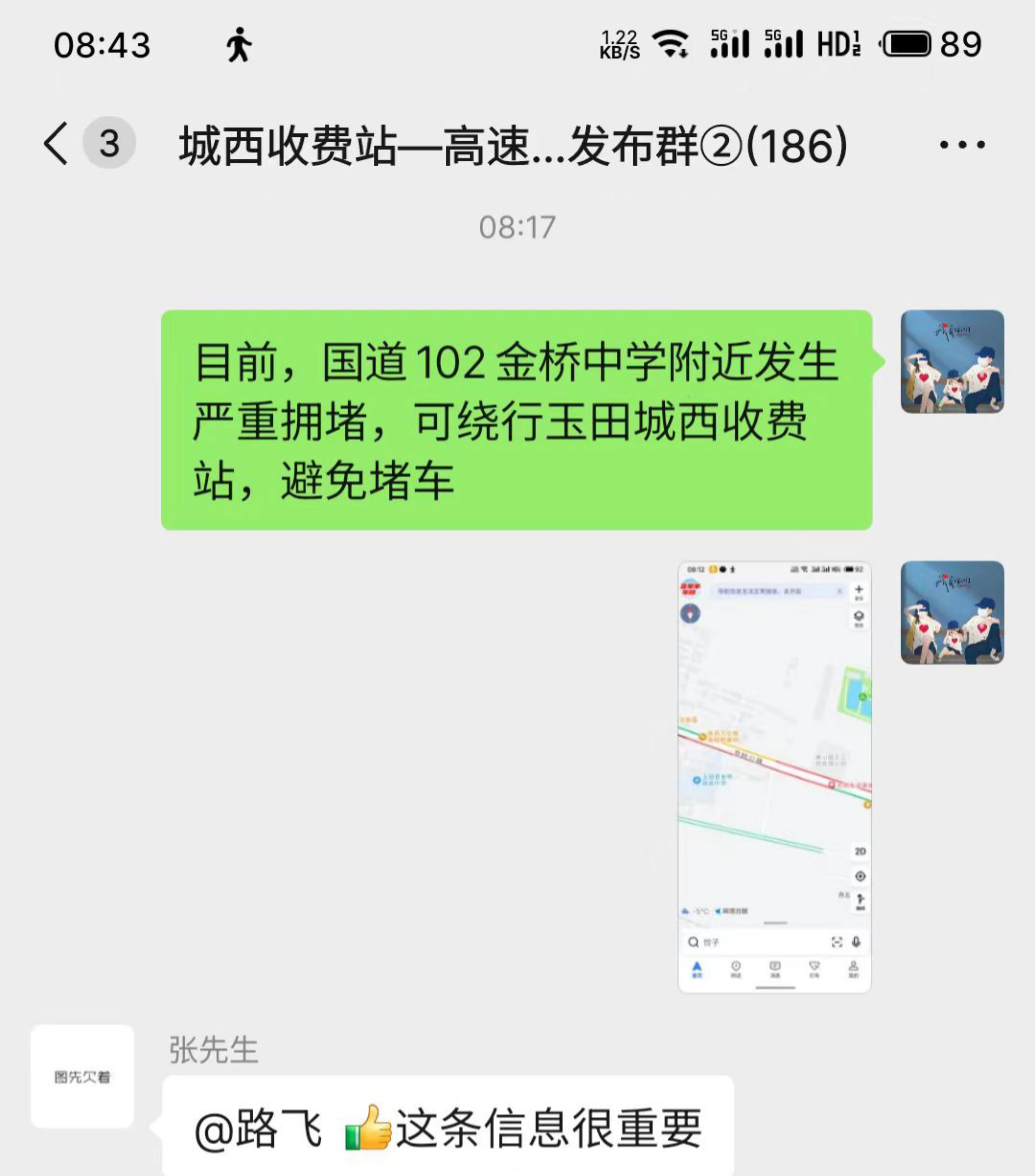 根据现场情况,为避免更多车辆受阻,减少交通压力,京哈北线分公司协同交警部门及时调整交通流线,并通过微信司乘服务群发布路况信息,提示司机合理规划行程。同时,引导需经过事故地段的车辆选择京秦高速公路作为替代路线绕行,避开拥堵路段。这一举措有效缓解了国道102的交通压力,保障了广大司乘人员的出行效率和安全。