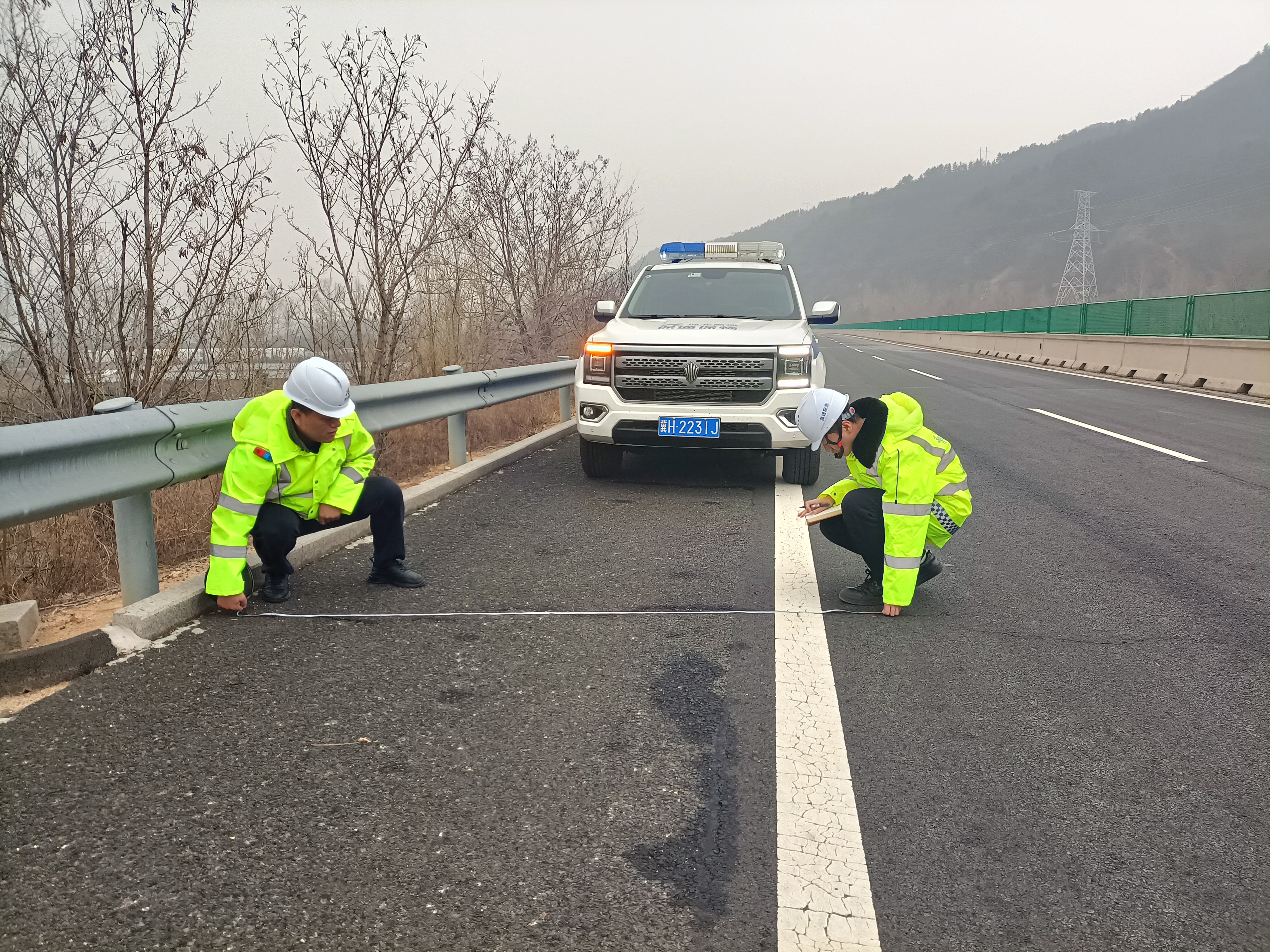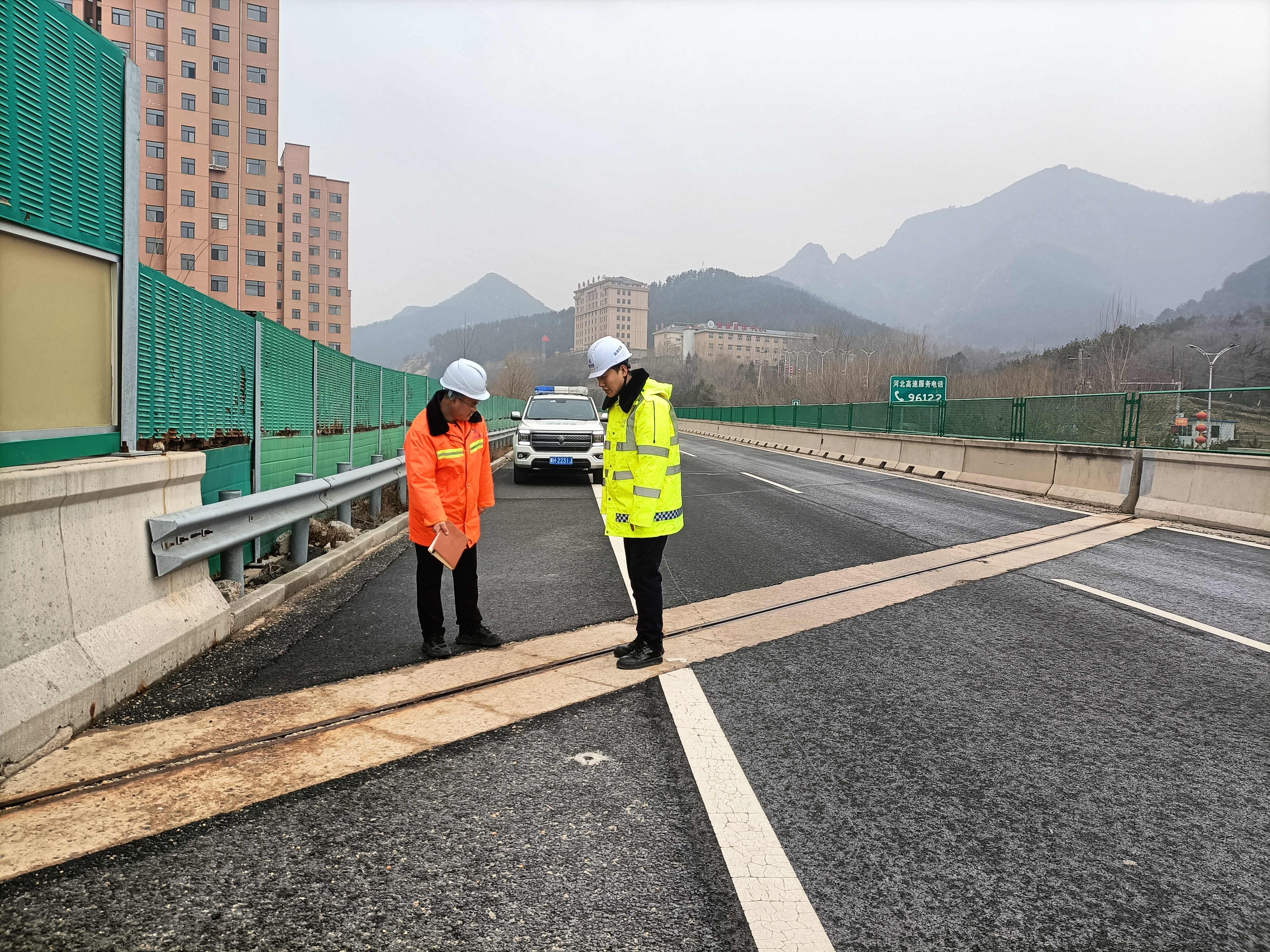 徒步踏查人员通过目测、现场测量、拍照等方式,对沿线沥青路面、路基防护、桥涵结构物、交通安全设施等病害进行全面调查和统计。在每天踏查开始前,带班人员进行岗前安全动员,要求巡查人员切实增强安全防范意识,提升自我保护能力。在路面踏查时,巡查车辆必须跟随在踏查人员身后,提醒过往车辆,保证踏查人员安全。涉及到安全方面的损坏第一时间派单,要求养护队第一时间进行修复,其余病害制作清单,按轻重缓急的原则对病害调查数据进行详细准确标记并制定维修计划。