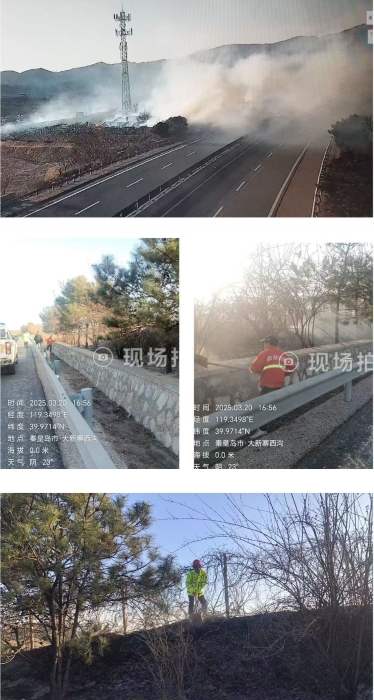 3月20日16时38分,承秦分公司指挥调度中心监控员在监控巡查中发现,承秦高速承德方向 k186处有大量烟雾,经多维度视频研判确认系边坡枯草自燃引发火情,火势尚小,周边无人。时值春季天干物燥,极易引发连锁安全隐患。