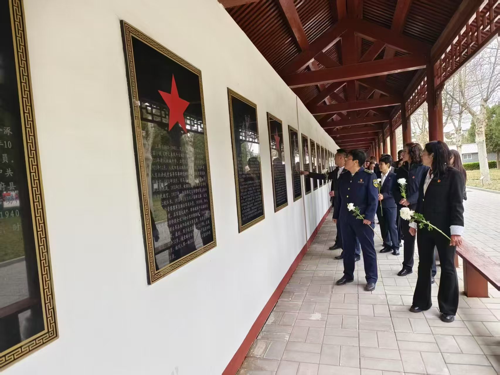 党员们跟随着讲解员的引导,瞻仰了革命烈士纪念碑及英烈事迹展示长廊,并为革命烈士敬献鲜花。