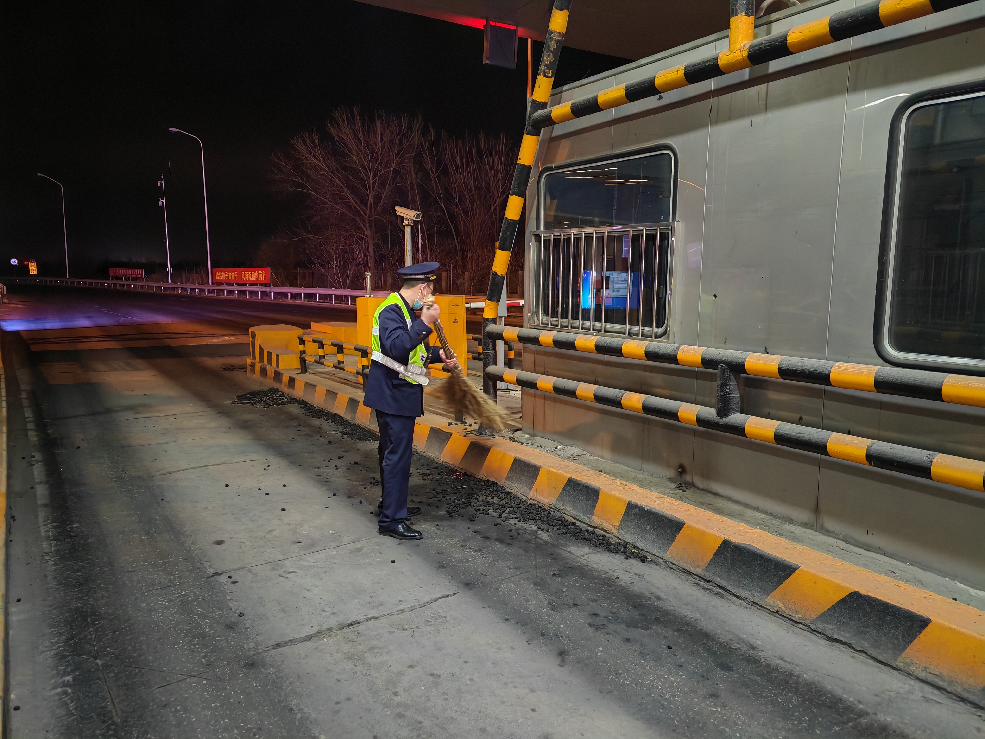 为了保障通行畅通,高鹏立刻找来扫帚进行清扫,煤灰随着夜风扑在他脸上和制服上。当最后一簸箕煤渣倒进编织袋时,高鹏的橡胶手套已经磨穿,指甲缝里嵌着黑黑的煤灰。