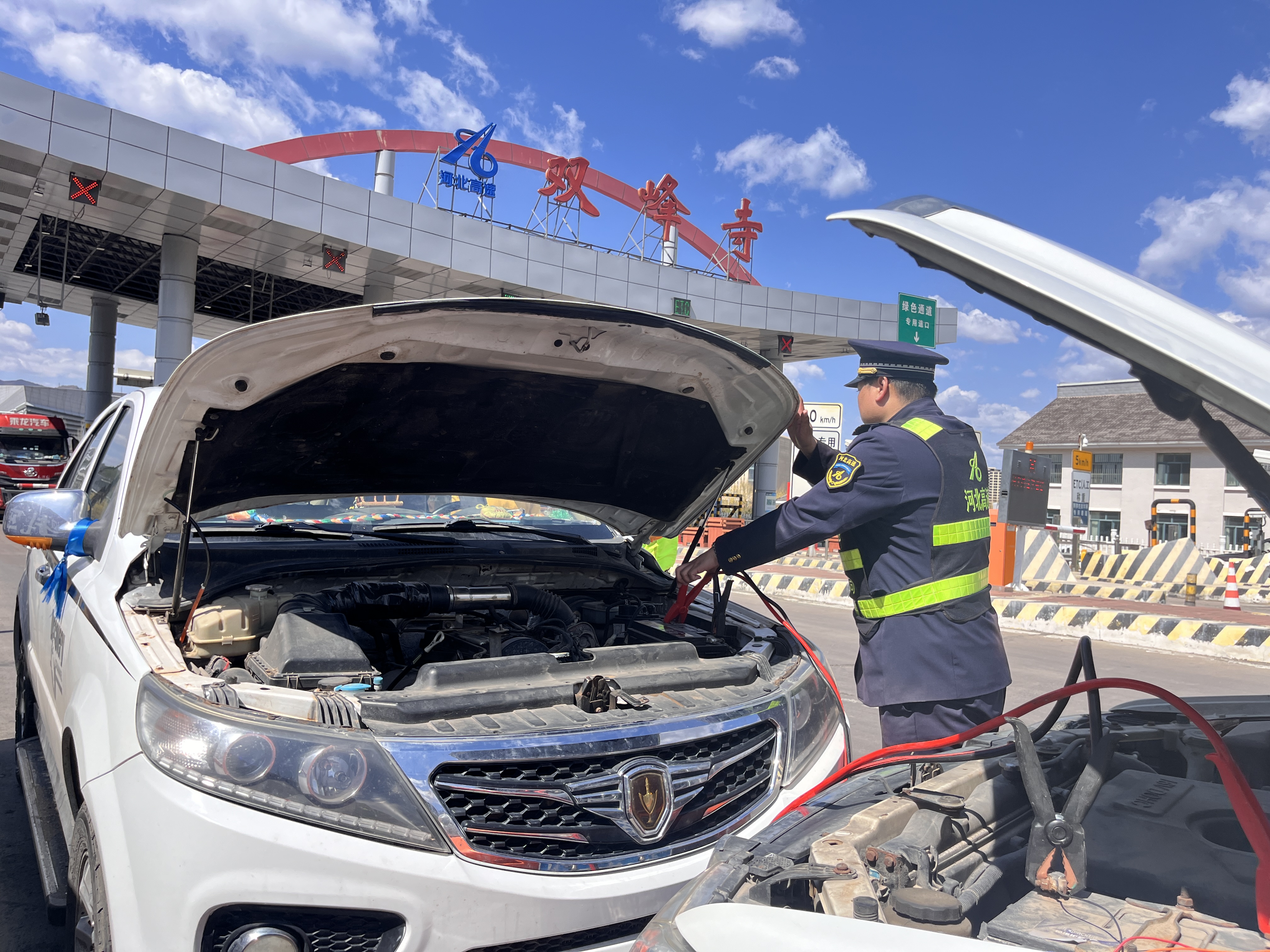 确认故障原因后,收费班长迅速将情况汇报给值班站长。值班站长即刻与平泉保通保畅应急大队的队员一同携带搭电线,驾驶救援车辆赶往现场。两人配合默契,熟练完成搭电操作,短短几分钟便成功启动故障车辆。