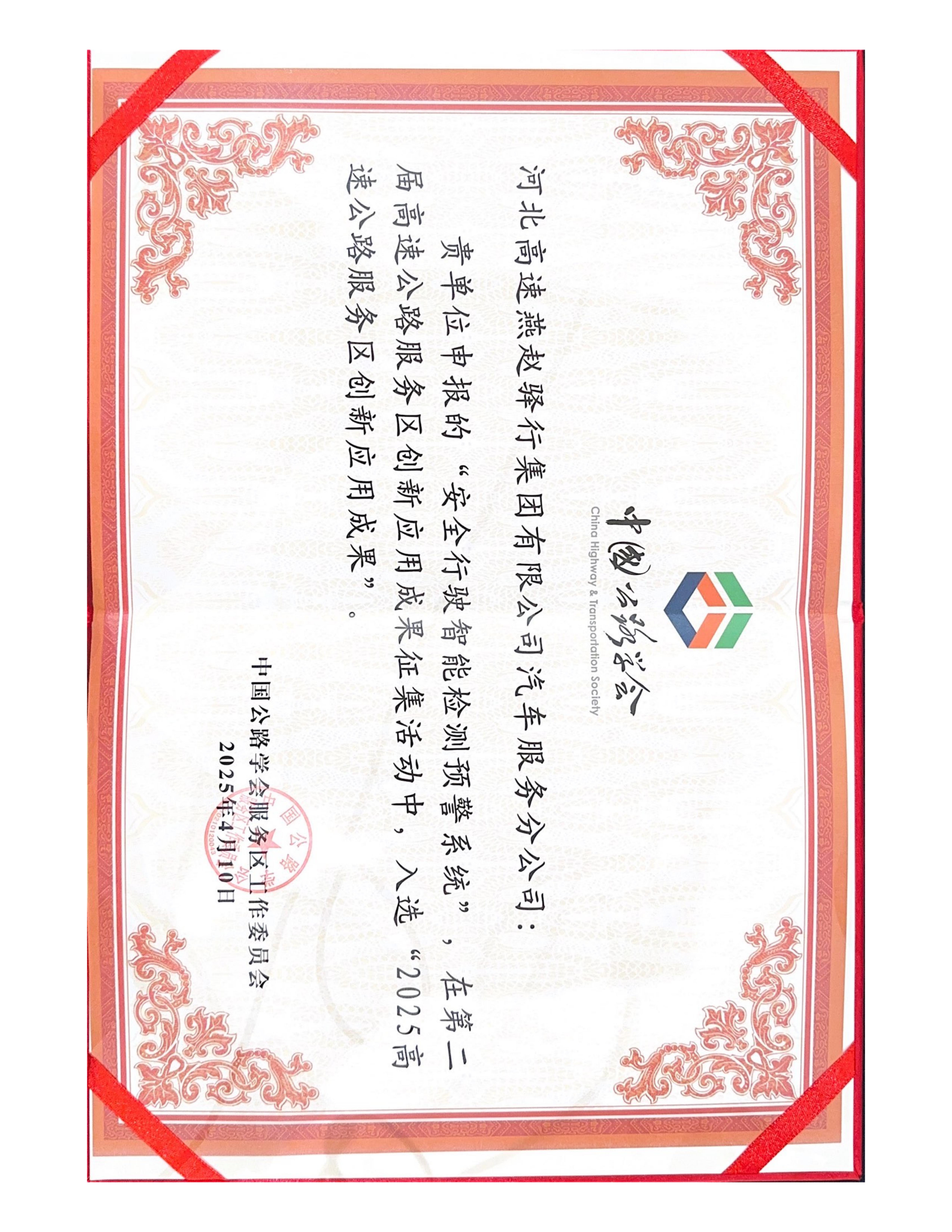 近日,由中国公路学会服务区工作委员会主办的第二届高速公路服务区创新应用成果征集活动圆满落幕。河北高速燕赵驿行集团有限公司汽车服务分公司自主研发的“安全行驶智能检测预警系统”凭借突出的创新性、实用性与可操作性,从众多参评项目中脱颖而出,成功入选2025高速公路服务区创新应用成果”!