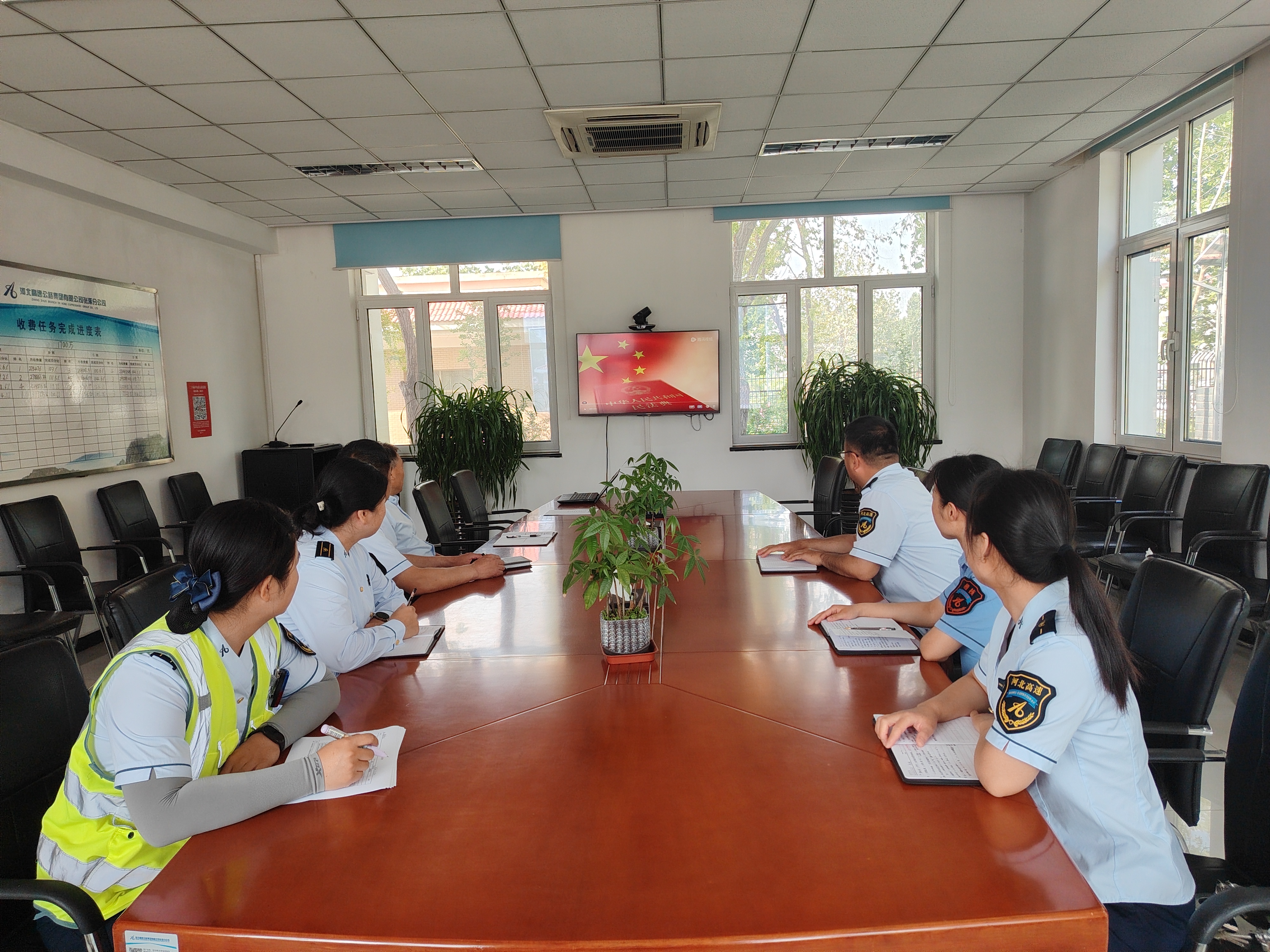 集中学习强意识,筑牢法治根基。 收费站组织全体员工集中观看《2025年民法典宣传月专题宣传片》,通过民法典颁布背景、法律条文解读等形式,深入领会民法典在保障民生权益、规范市场行为中的核心作用。