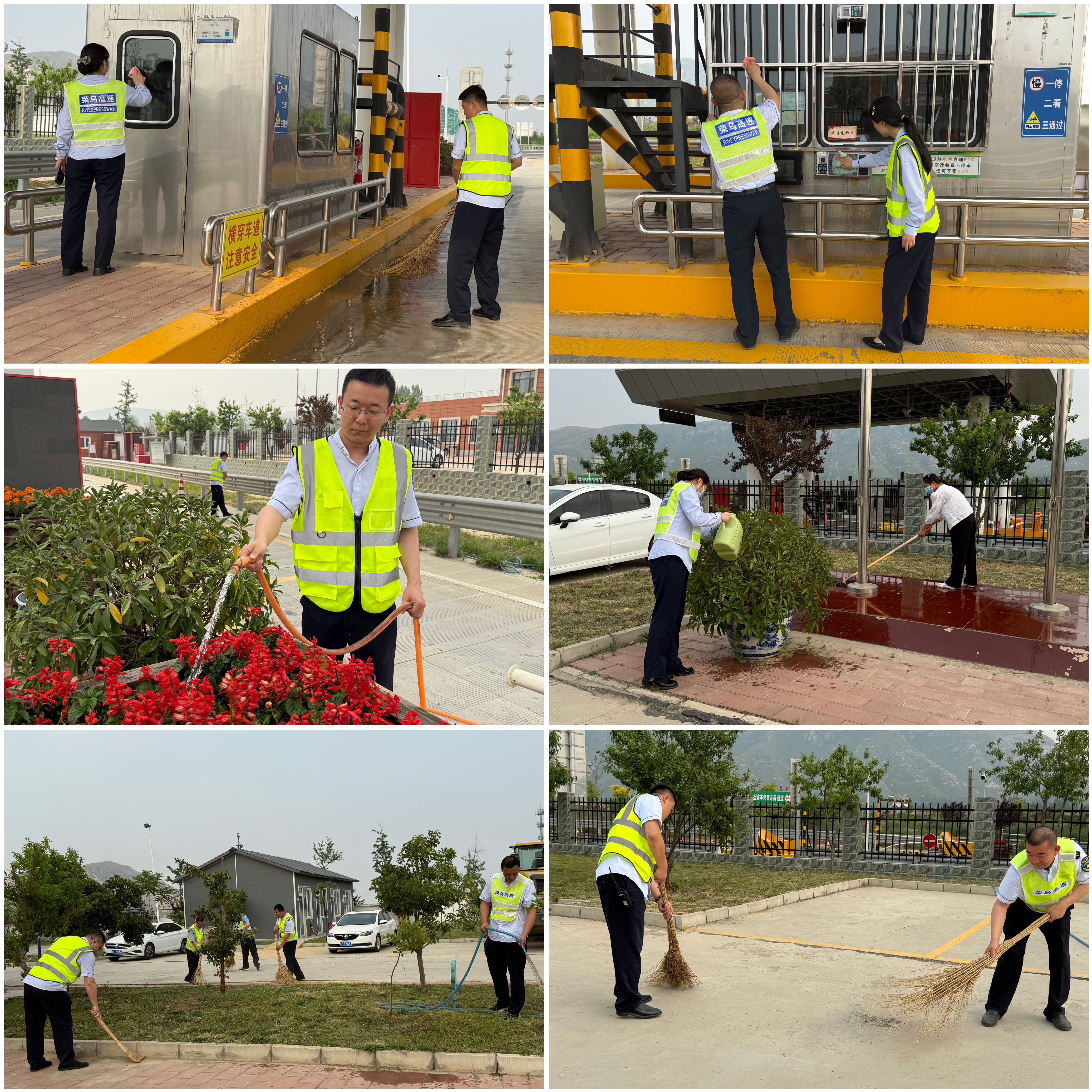 此次环境整治行动从站区各个角落入手。针对站区,大家分工明确,有的清理站区内的堆积物、清扫石屑尘土,让站区更加整洁有序;有的对绿化区内的杂草进行修剪、对树木进行浇灌,使得绿化区域焕发出勃勃生机。在车道上,大家认真清理过往车辆留下的污渍和垃圾,手持扫帚、簸箕,仔细清扫地面上纸屑和杂物,不放过任何一个卫生死角。用抹布仔细擦拭岗亭的门窗、桌面和设备,将岗亭擦拭的窗明几净。