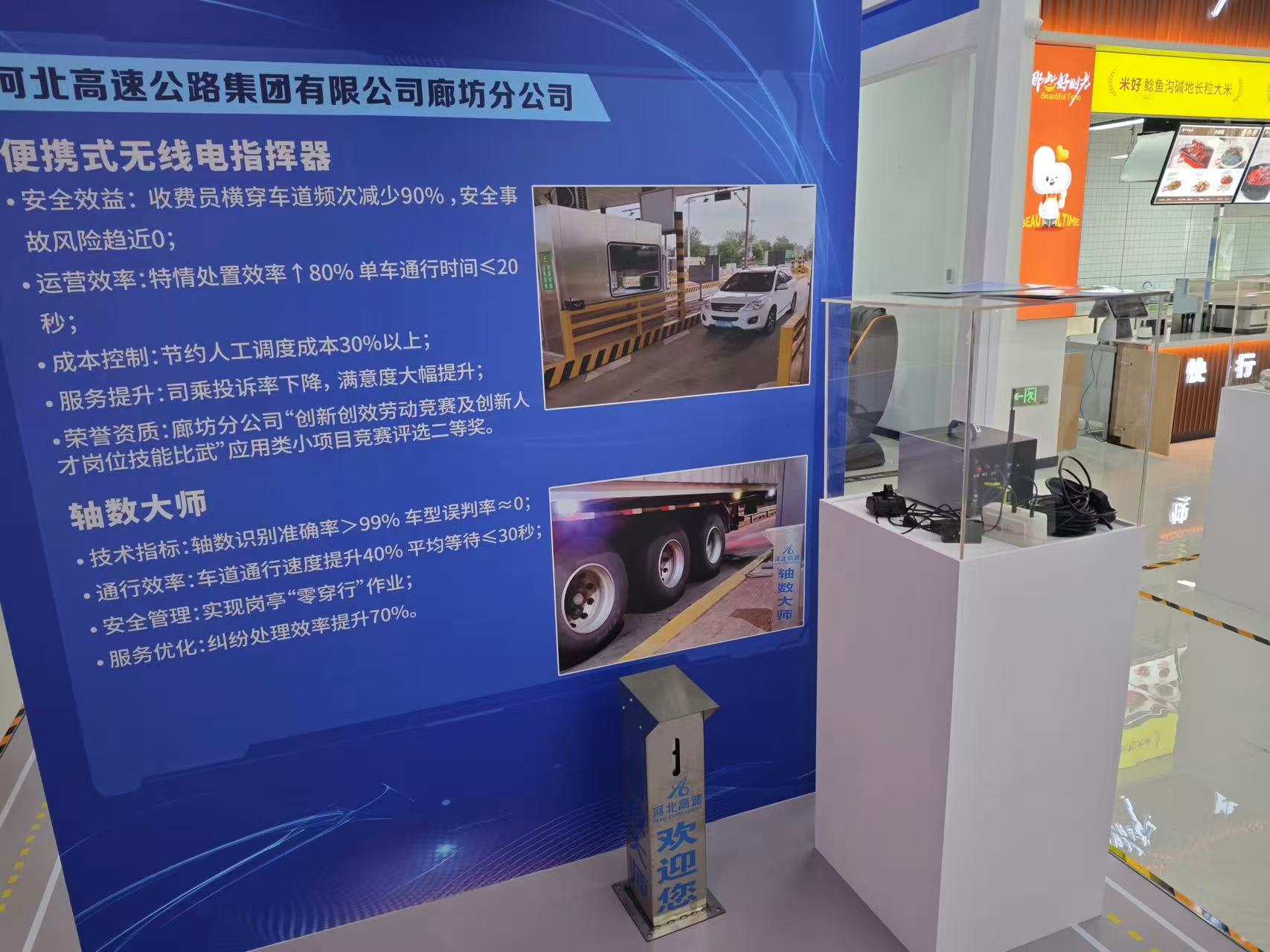 廊坊分公司创新项目展出方式以实物展品、视频讲解、操作演示为主,吸引了多名司乘人员驻足观看。近年来,分公司以成果贴近工作岗位需求为切入点,不断开拓思维,将想法转化为实践,真正落实理论转型,本次展品也得到了集团公司极大地肯定,在人民网专题报道中特别指出,“廊坊分公司便携式无线电指挥器,通过远程调度减少收费员横穿车道频次,降低安全风险,轴数大师创新发明通过优化车型识别流程,缩短车辆通行等待时间,获司乘人员现场点赞”。除此之外,展出项目中《收费栏杆机光电感应防漏费智能报警装置》列入集团公司推广类小发明创造项目并获得发明专利1项,该项目验收后在分公司范围进行了推广学习;《收费广场高杆灯光感控制》引入智能控制系统,实现自动调节,精准匹配实际需求,提升管理效能;《职工横穿车道安全提示装置》通过光电感应装置、无线模块发射信号,听觉、视觉多角度有效提醒职工注意观察过往车辆,目前该项目正在申请实用新型专利。