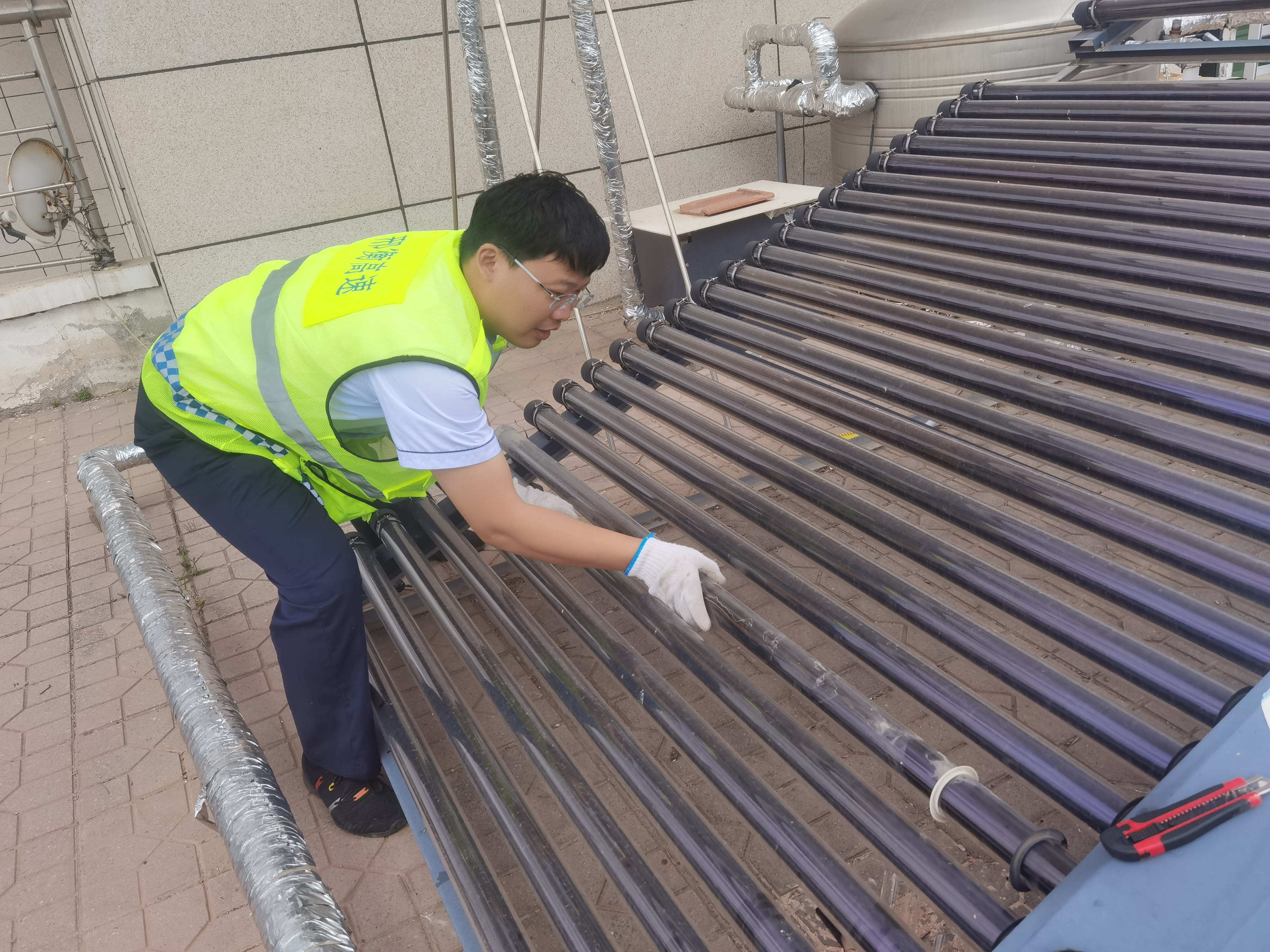 值班站长迅速核实了排查结果,并在明确故障原因后,本着降本增效的原则,决定采取自主维修的方式解决问题。后勤人员随即拆除了损坏的太阳能管,并替换为备用部件,最终成功修复了故障,使太阳能热水系统恢复了正常运行。