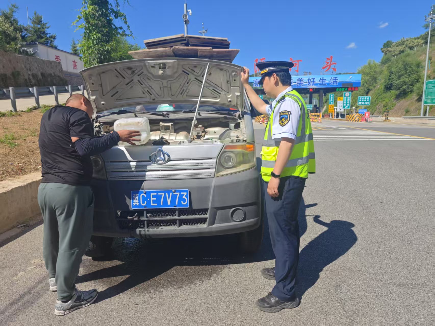 6月20日14时55分,一辆小型货车在隔河头收费站完成缴费后突发故障,无法启动,滞留在收费车道内。当班班长发现情况后立即上前询问,得知车辆因水箱过热缺水导致抛锚。