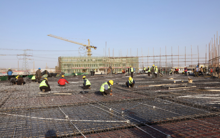 京雄高速FJ2标施工人员进行钢筋绑扎作业